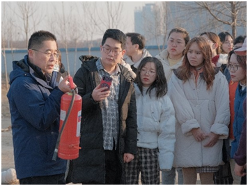 在消防安全教育培训中,培训讲师结合近期重大火灾案例为大家上了一堂消防安全课,从火灾事故分析、隐患排查和掌握技能三个方面,对消防安全常识、重点部位日常管理、灭火器使用方法以及如何报警、疏散、逃生、自救等技能进行了讲授。讲座后,开展模拟火灾应急疏散演练。随着急促的警报声响起,全体师生在保卫处工作人员指挥下,沉着冷静、有序疏散,按照应急疏散预案进行了消防安全疏散演练。全体师生还参加了“灭火器实战演练”的消防教育体验课,进一步学习常用的手提式干粉灭火器的使用方法,亲身体验灭火器现场灭火的实际操作。