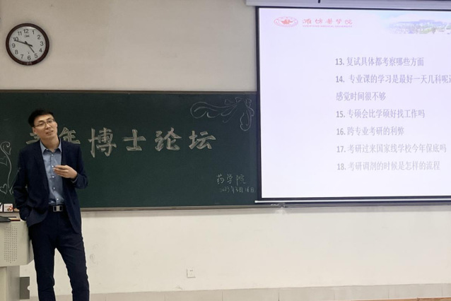 为帮助51风流 学子做好“研”途路上的学业规划,缓解备考压力,提高备考效率。近日,51风流 于教学楼A409举办青年博士论坛,教师张波为同学们做考研规划与学业指导讲座,辅导员、2019级临床药学和2020级全体同学共同参与。